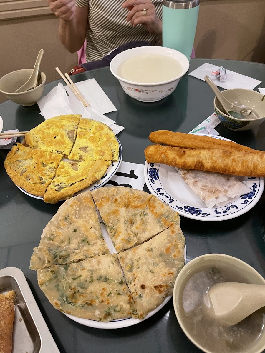 This is a cash only restaurant. We came here for the breakfast, which is Saturdays and Sundays only from 11 to 2pm. We got the Scallion pancake with egg, 2 Salty rice roll, Salty soy milk, Sweet soy milk and a Baked pocket with beef. My favorite item was definitely the salty rice roll, followed the the sweet soy milk and then the scallion pancake with egg. I thought the food was kind of salty, so the soy milks were necessary. Very traditional Taiwanese styled breakfast.